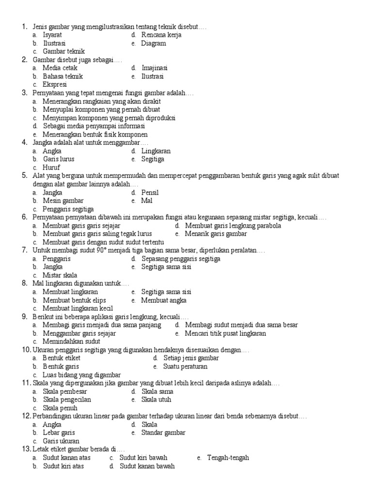 Jenis gambar yang mengilustrasikan tentang teknik disebut. Soal gambar teknik kelas x TSM. Soal uts gambar teknik kelas x.